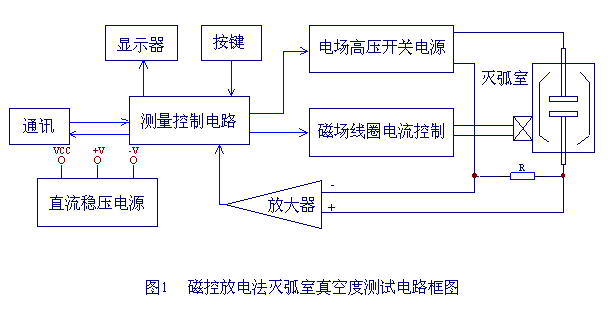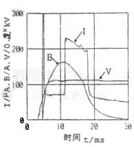 整機(jī)由測量控制電路、電場高壓產(chǎn)生電路、磁場線圈電流控制電路、通訊、打印機(jī)、液晶顯示電路等組成。其工作過程為:由測量控制電路發(fā)出指令,由開關(guān)電源給磁場電容充電,通過控制電路監(jiān)控,當(dāng)磁場電容上的電壓達(dá)到預(yù)定值后,控制電路發(fā)出兩路控制信號分別控制電場高壓的輸出和磁場線圈電流的導(dǎo)通,使滅弧室處于強(qiáng)電場、強(qiáng)磁場的狀態(tài)中,滅弧室開始放電,產(chǎn)生離子電流I,如圖2中的曲線I所示。該電流經(jīng)取樣電阻R和預(yù)處理電路后輸入單片機(jī),最后經(jīng)運(yùn)算由液晶顯示屏顯示測得的真空度值。
