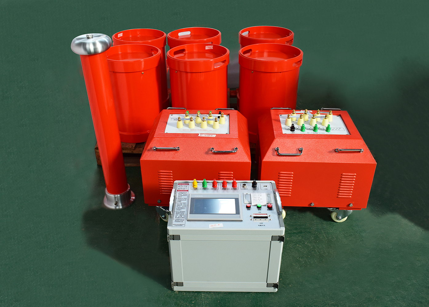 按 “變頻電源→勵磁變壓器→串聯(lián)電抗器→被試電纜→電容分壓器→接地” 的順序,將所有設(shè)備串聯(lián)成閉合主回路;同時把電容分壓器的電壓信號接入變頻電源(用于實(shí)時監(jiān)測電壓),且所有設(shè)備外殼、電纜非試驗(yàn)相均需可靠接地(接地電阻≤4Ω),接線后需雙人交叉核對,避免錯接、漏接。