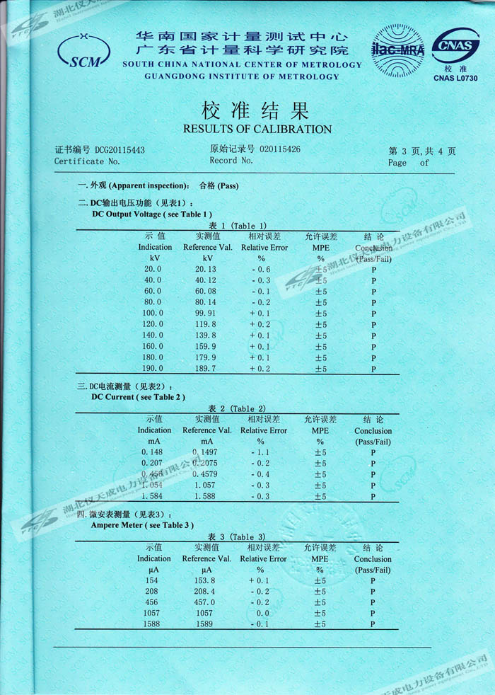 YTCZG-200kV2mA直流高壓發(fā)生器的資質(zhì)證書