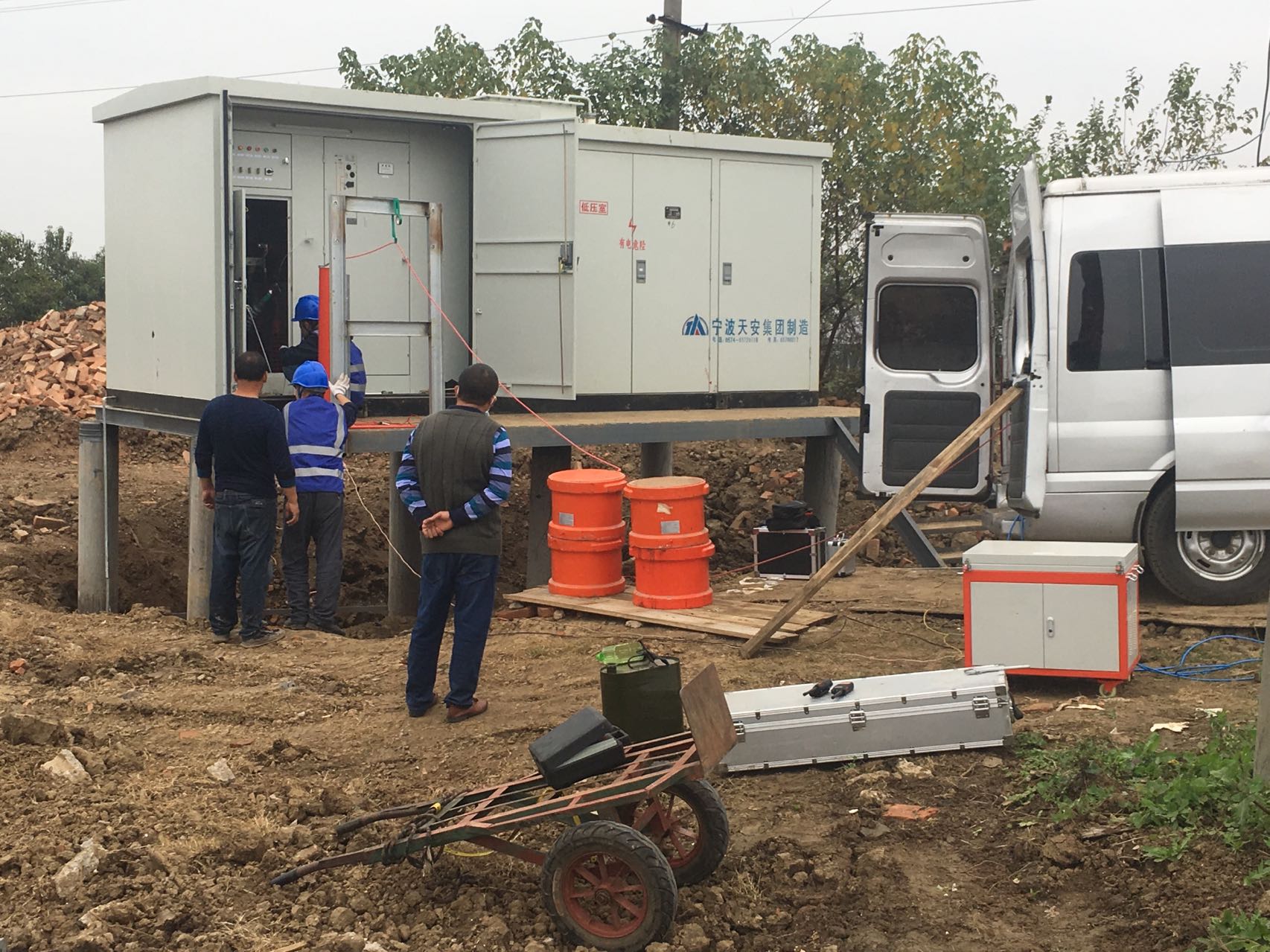 前幾天,我司儀天成電力接到荊州洪湖中鐵十三局集團(tuán)需求,需要我司給他們做試驗(yàn)站內(nèi)的高壓絕緣電纜耐壓試驗(yàn),以及絕緣電阻測(cè)試等方面內(nèi)容工作,我司這邊接到需求,就周日一大早馬不停蹄地帶上了眾多設(shè)備,馬不停蹄地趕往了荊州洪湖目的地,這次我司出動(dòng)了6名人員過去,設(shè)備這邊涉及有:串聯(lián)諧振系列:包括主機(jī)一臺(tái),激勵(lì)變壓器1臺(tái),電抗器8件,電容分壓器一件以及多種接線配件等等,然后再還有智能絕緣測(cè)試儀器一臺(tái)以及一些配件。